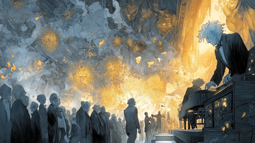 muffled, like memory’s fading hosts;